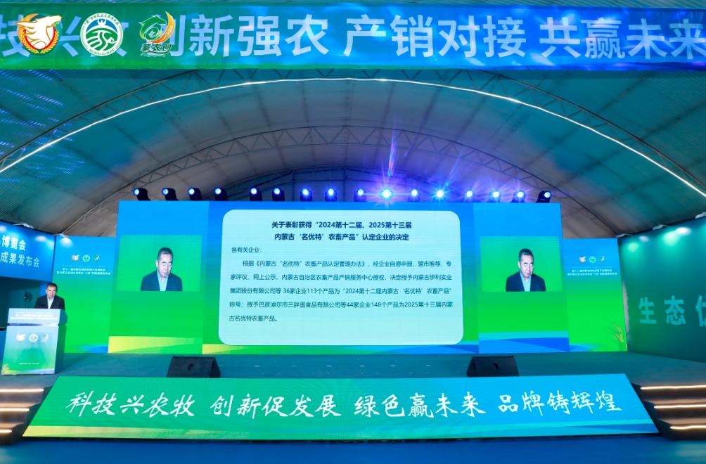 協(xié)會(huì)會(huì)長(zhǎng)徐建忠作精彩發(fā)言,秘書長(zhǎng)呼群宣讀《關(guān)表彰獲得2024年第十二屆、2025年第十三屆內(nèi)蒙古'名優(yōu)特'農(nóng)畜產(chǎn)品”認(rèn)定企業(yè)的決定》并代表協(xié)會(huì)與內(nèi)蒙古教育出國留學(xué)服務(wù)中心簽訂的框架合作協(xié)議項(xiàng)目。